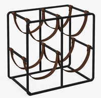 Kovový kožený stojan na víno so 4 policami na fľaše