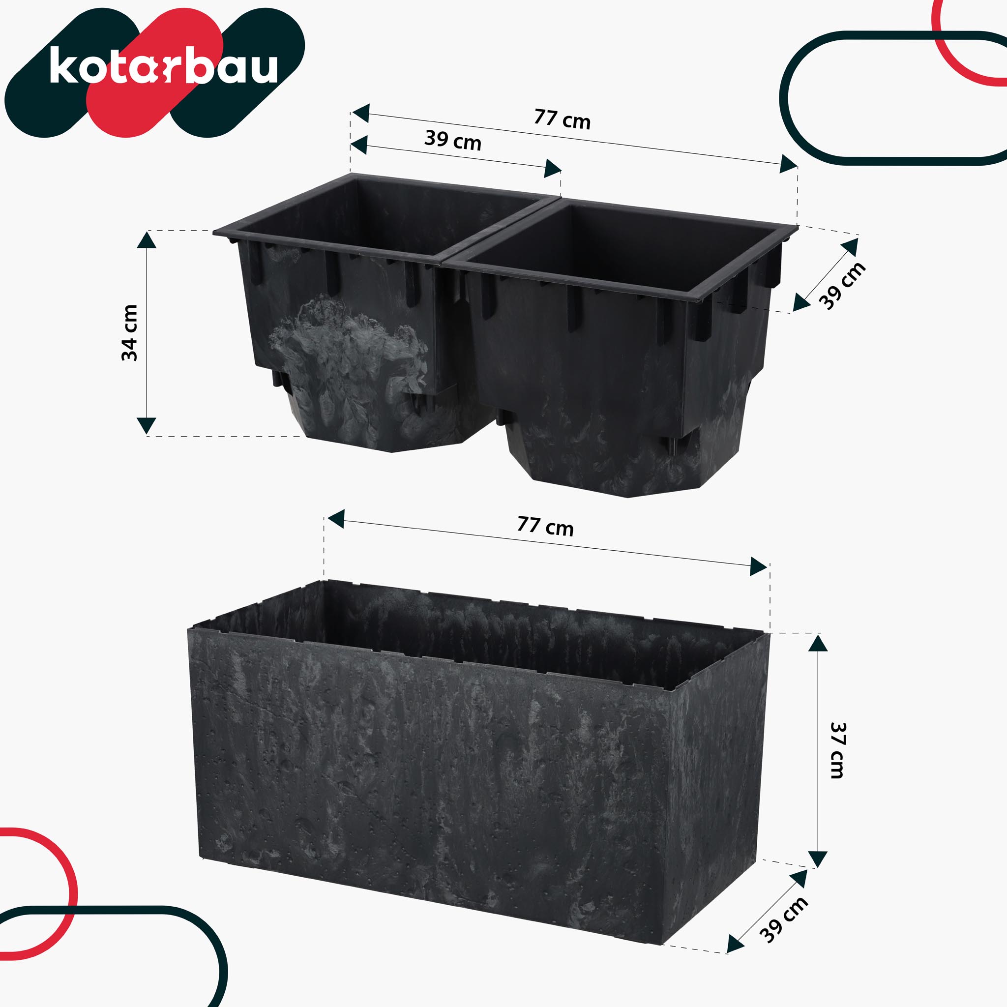 - Štvorcový tvar kvetináča umožňuje jednoduché umiestnenie pozdĺž stien, zábradlí alebo plotov, čo umožňuje efektívne využitie aj menších priestorov