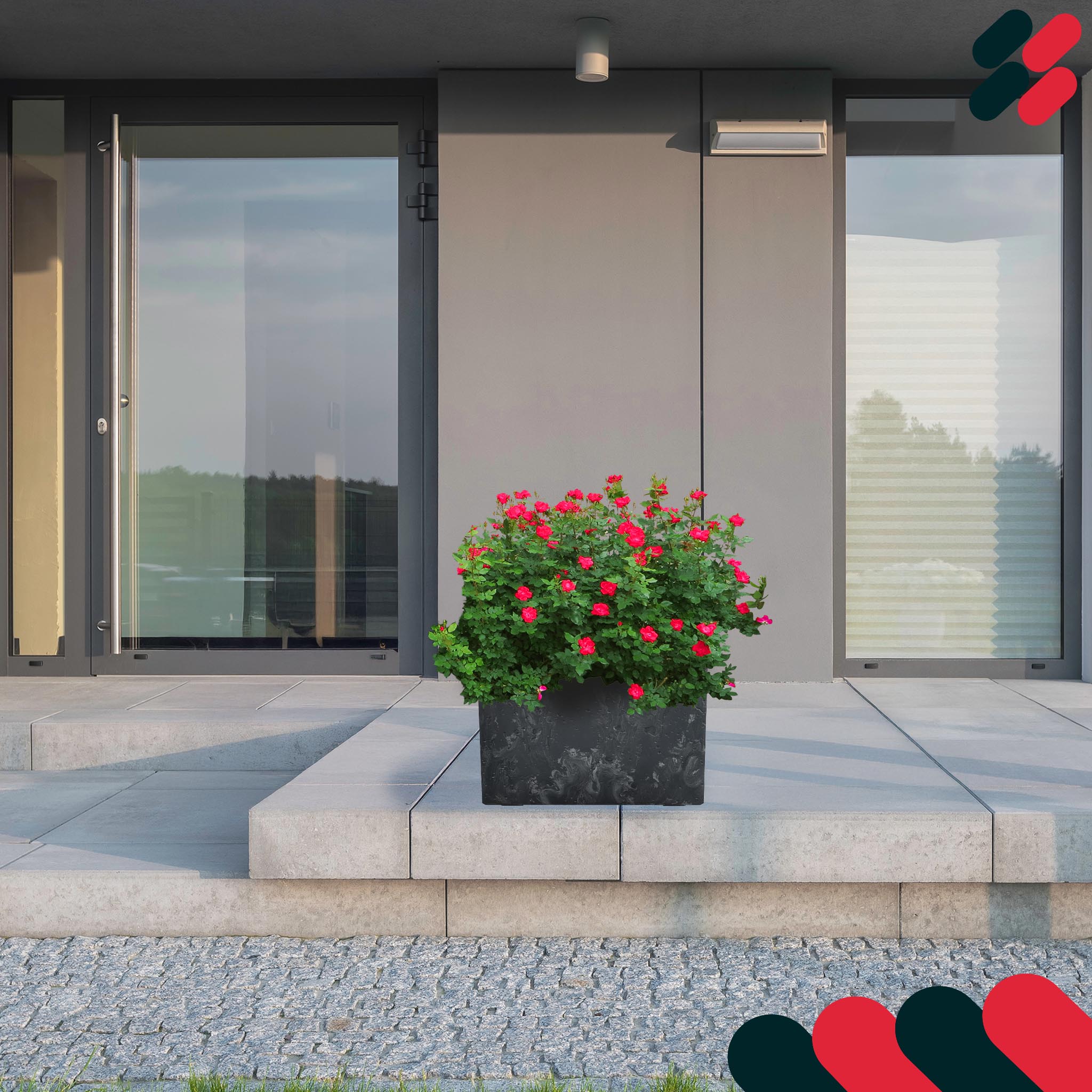 • Dodajte svojmu priestoru moderný vzhľad s obdĺžnikovým kvetináčom s betónovou štruktúrou. Industriálny štýl spája estetiku, funkčnosť a trvácnosť – ideálny na balkón aj do interiéru.