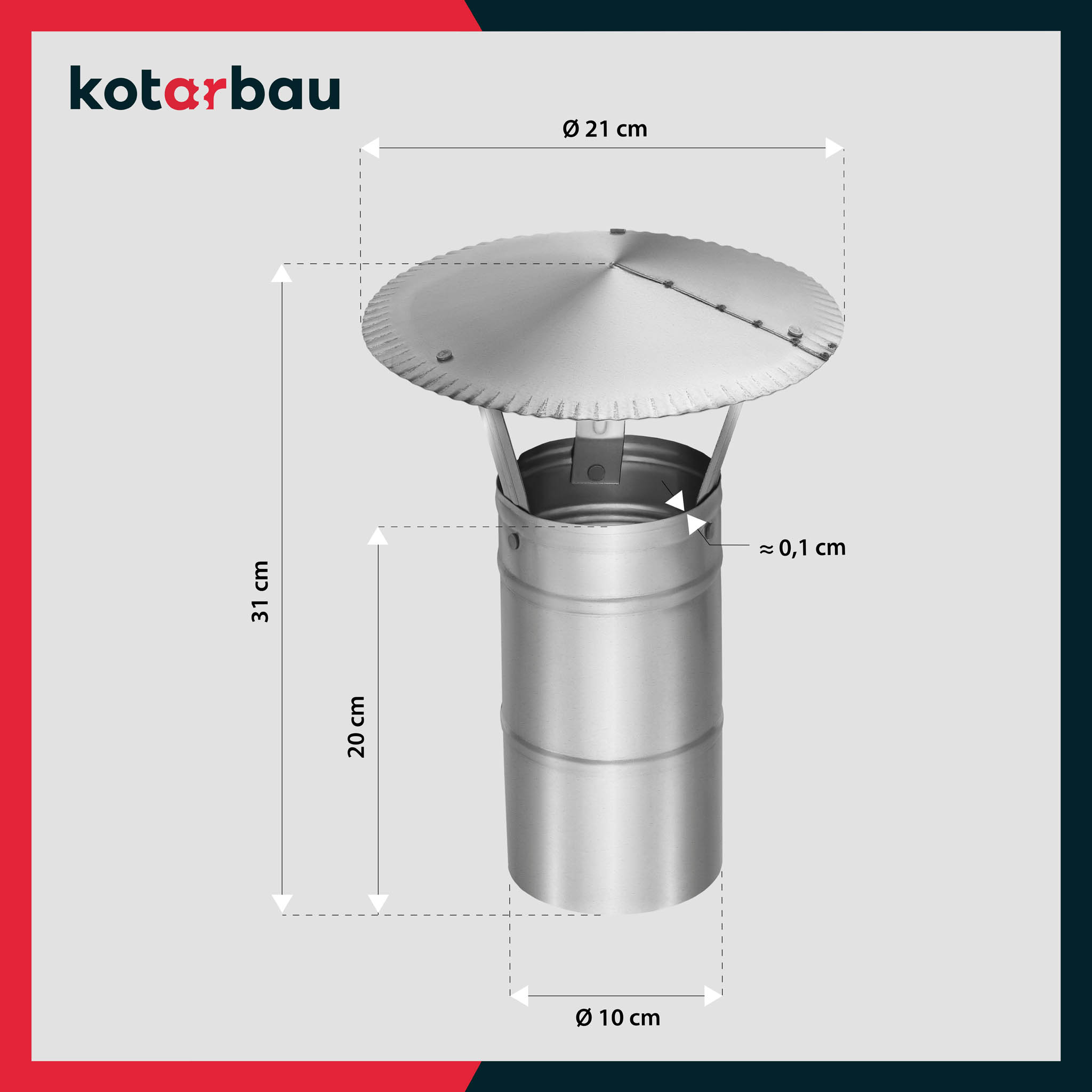 Dymová strieška na komínové potrubie pozinkovaná strieborná 100 mm