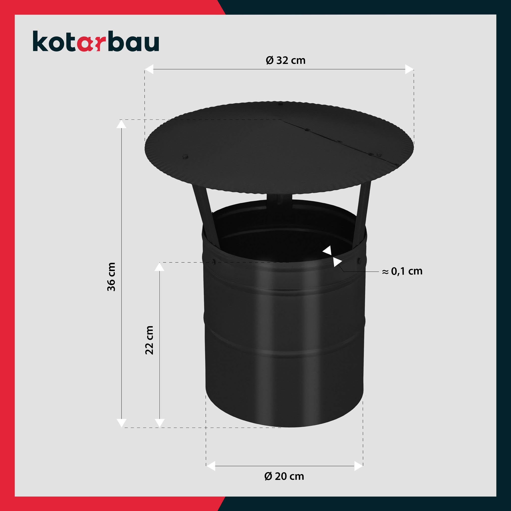 Dymová strieška na komínové potrubie pozinkovaná čierna 200 mm