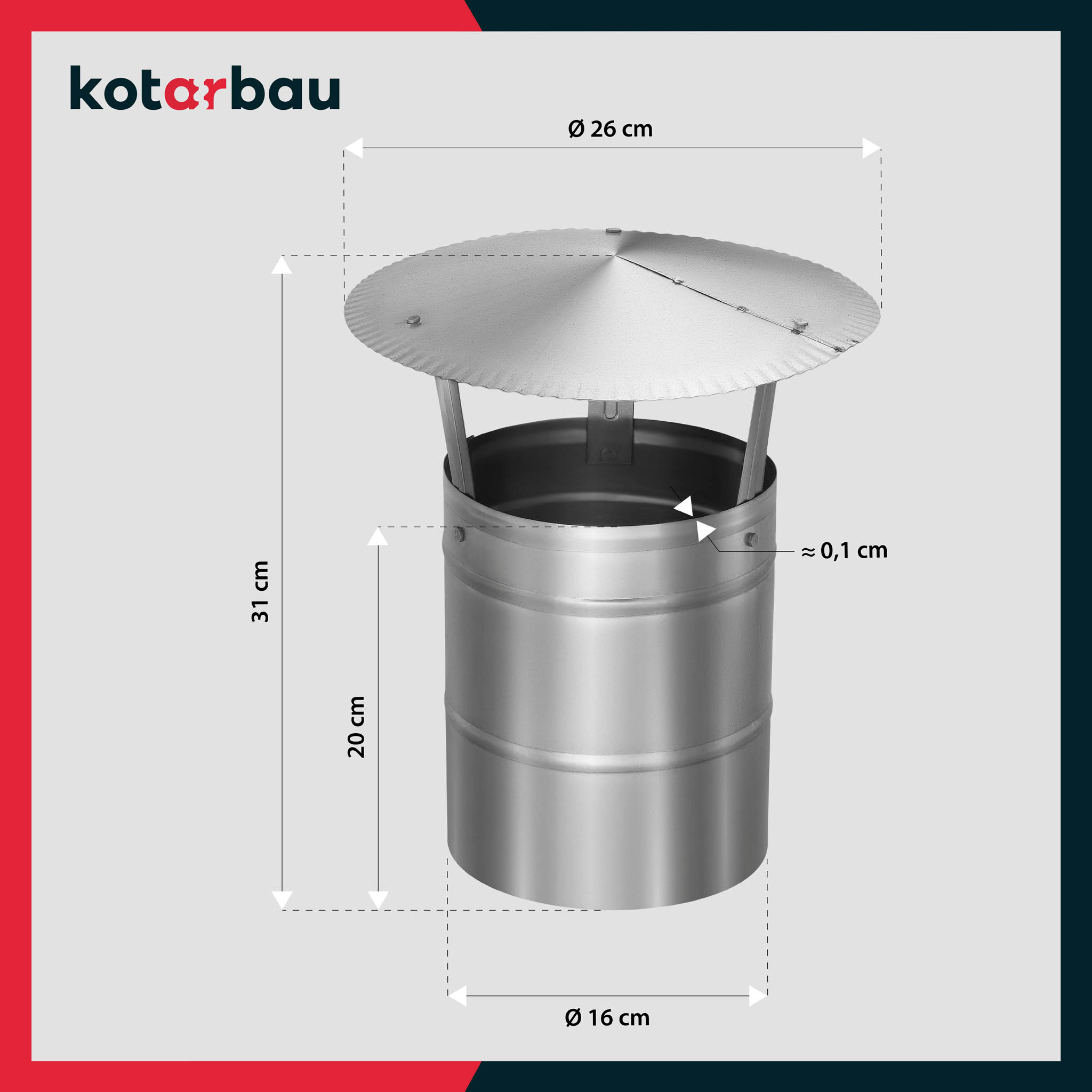 • Komínová strieška je vyrobená z vysoko kvalitnej pozinkovanej ocele, odolnej proti korózii a mechanickému poškodeniu. Proces galvanizácie vytvára účinnú ochrannú vrstvu, ktorá chráni kov pred hrdzou aj v prostredí so zvýšenou vlhkosťou.