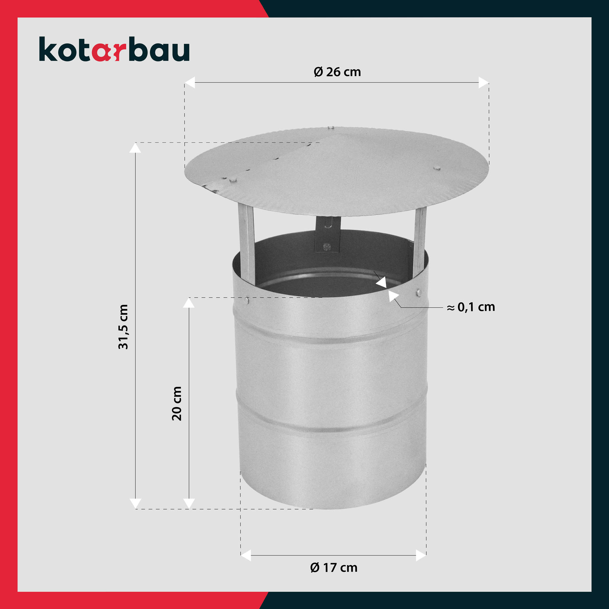 - Komínová strieška je vyrobená z vysoko kvalitnej pozinkovanej ocele, odolnej proti korózii a mechanickému poškodeniu. Proces galvanizácie vytvára účinnú ochrannú vrstvu, ktorá chráni kov pred hrdzou aj v prostredí so zvýšenou vlhkosťou.