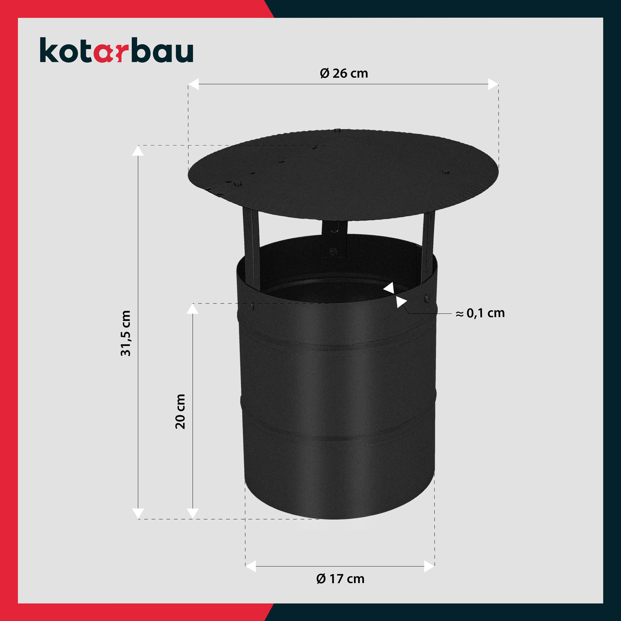 - Komínová strieška je vyrobená z vysoko kvalitnej pozinkovanej ocele, odolnej proti korózii a mechanickému poškodeniu. Proces galvanizácie vytvára účinnú ochrannú vrstvu, ktorá chráni kov pred hrdzou aj v prostredí so zvýšenou vlhkosťou.
