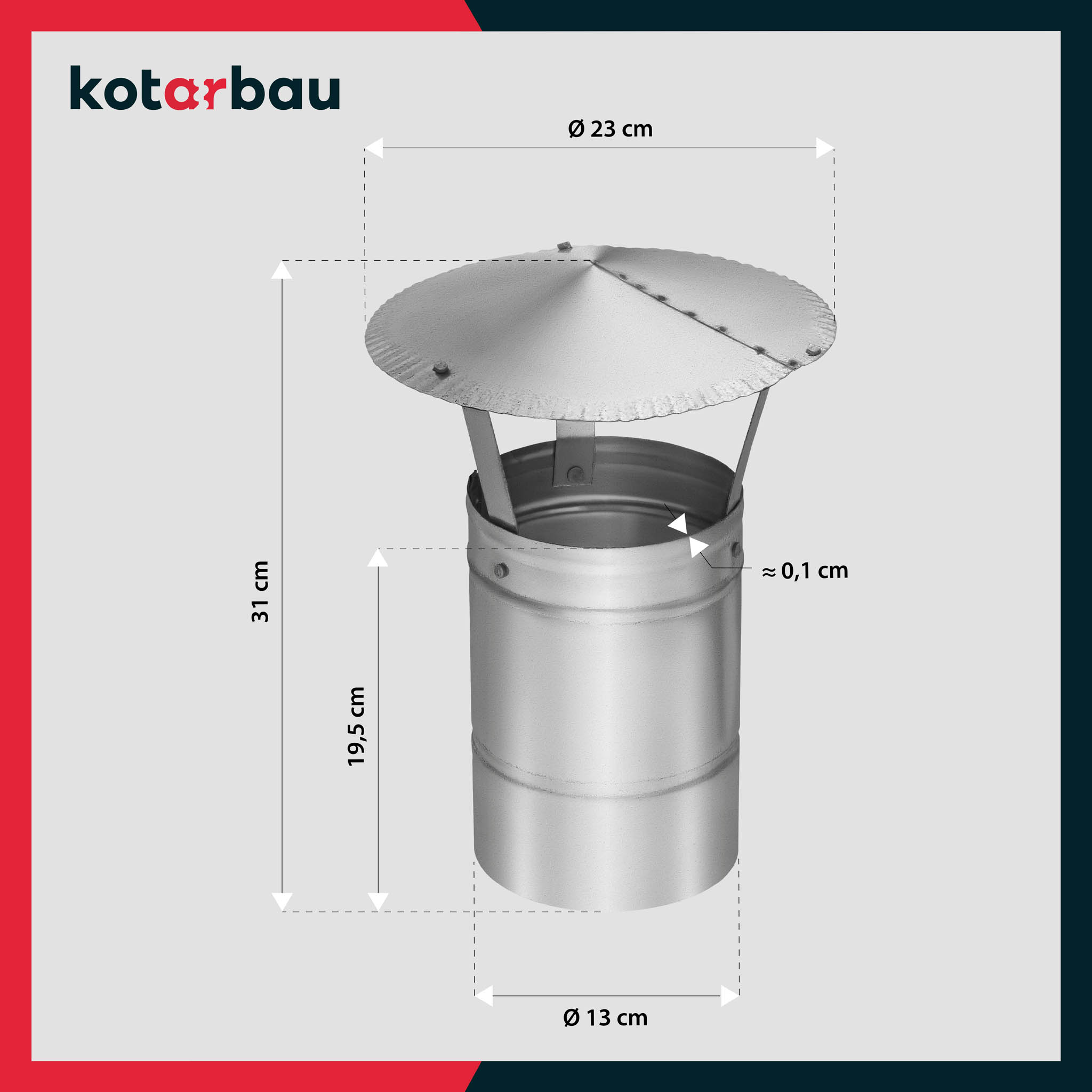 • Komínová strieška je vyrobená z vysoko kvalitnej pozinkovanej ocele, odolnej proti korózii a mechanickému poškodeniu. Proces galvanizácie vytvára účinnú ochrannú vrstvu, ktorá chráni kov pred hrdzou aj v prostredí so zvýšenou vlhkosťou.