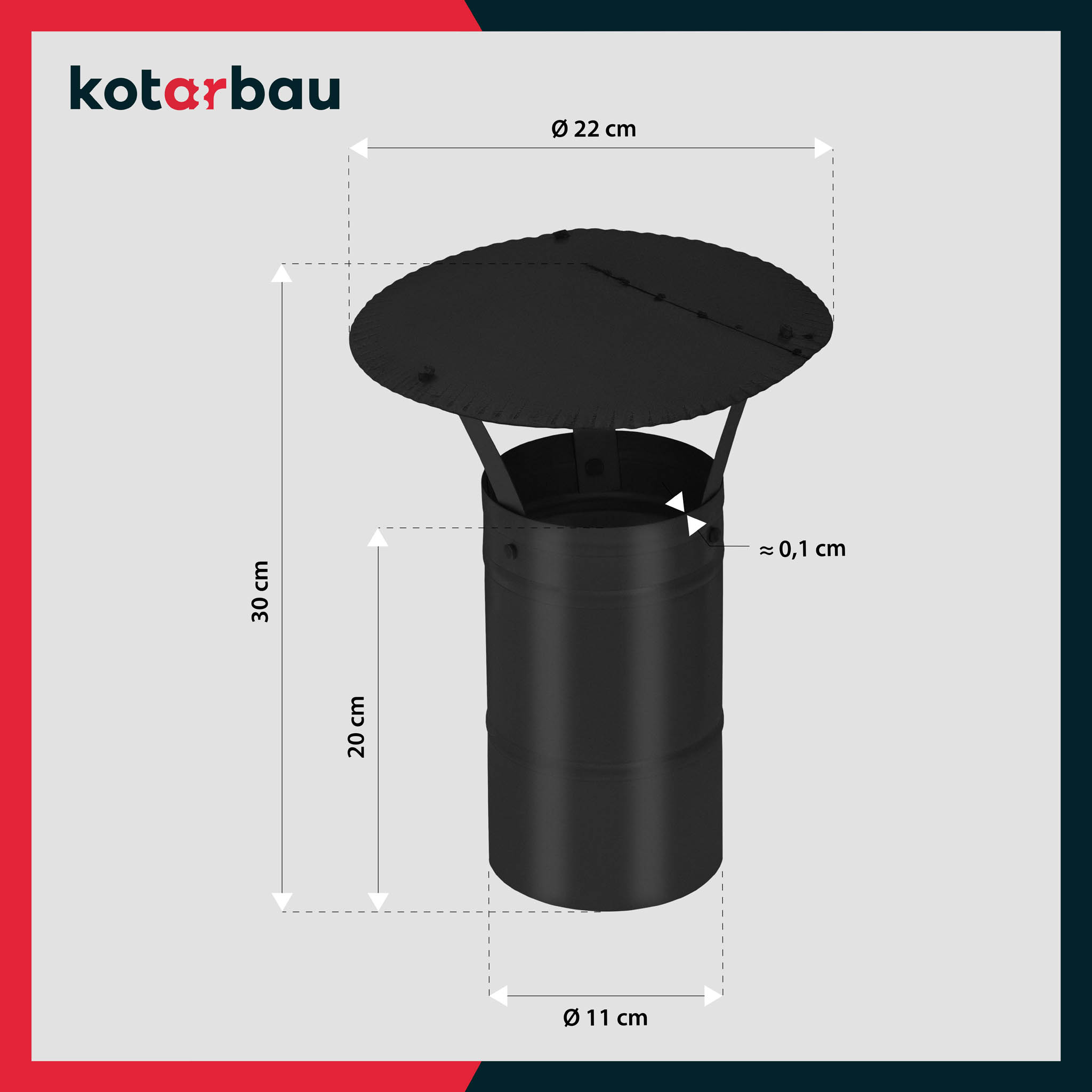Dymová strieška na komínové potrubie pozinkovaná čierna 110 mm