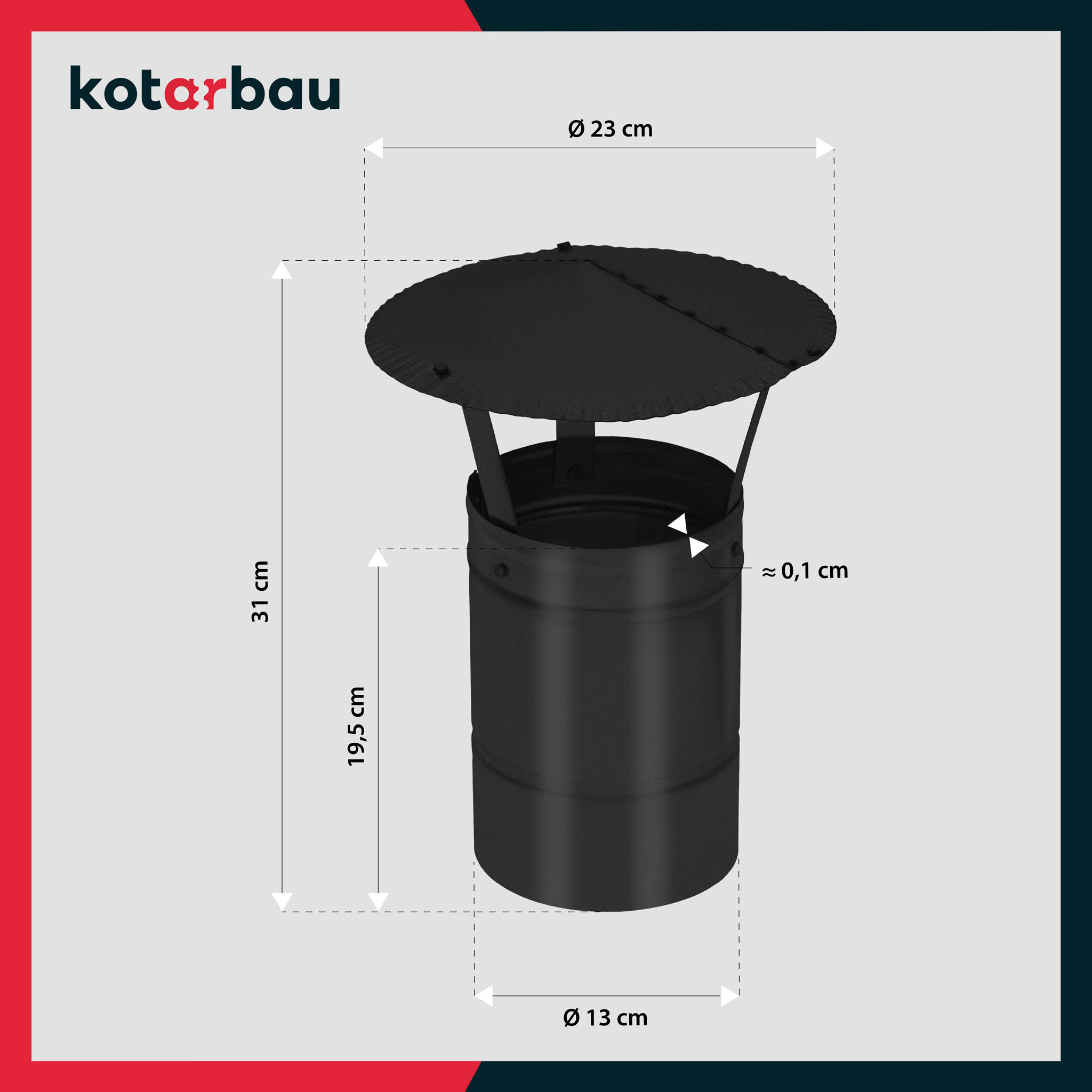 - Komínová strieška je vyrobená z vysoko kvalitnej pozinkovanej ocele, odolnej proti korózii a mechanickému poškodeniu. Proces galvanizácie vytvára účinnú ochrannú vrstvu, ktorá chráni kov pred hrdzou aj v prostredí so zvýšenou vlhkosťou.