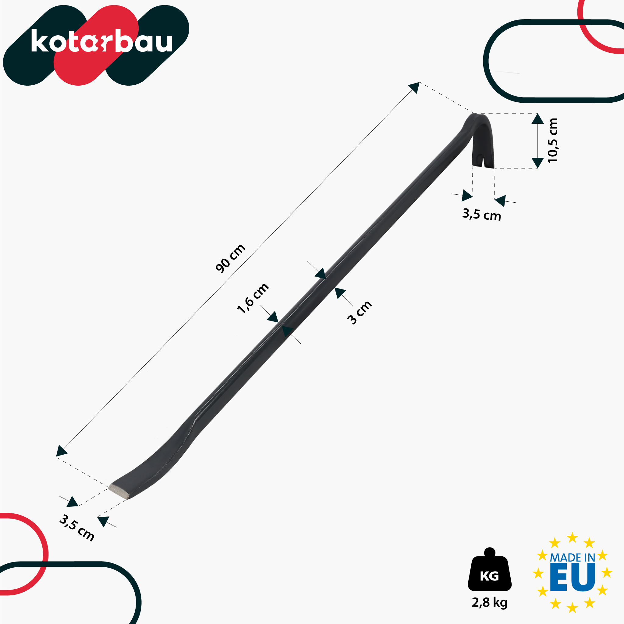 Pevná páčka je základný nástroj, ktorý sa hodí ako do profesionálnej dielne, tak aj pri domácich opravách. Vyrobená z vysoko kvalitnej kovaná ocele, zaisťuje spoľahlivosť a bezpečnosť práce aj pri vysokom zaťažení. Vďaka svojej univerzálnej konštrukcii je ideálna na páčenie, rozbíjanie, vyťahovanie klincov alebo rozdeľovanie konštrukčných prvkov. Je to nástroj, ktorý stojí za to mať vždy po ruke.