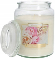 Veľká sklenená vonná sviečka s viečkom 100 h - biele kvety